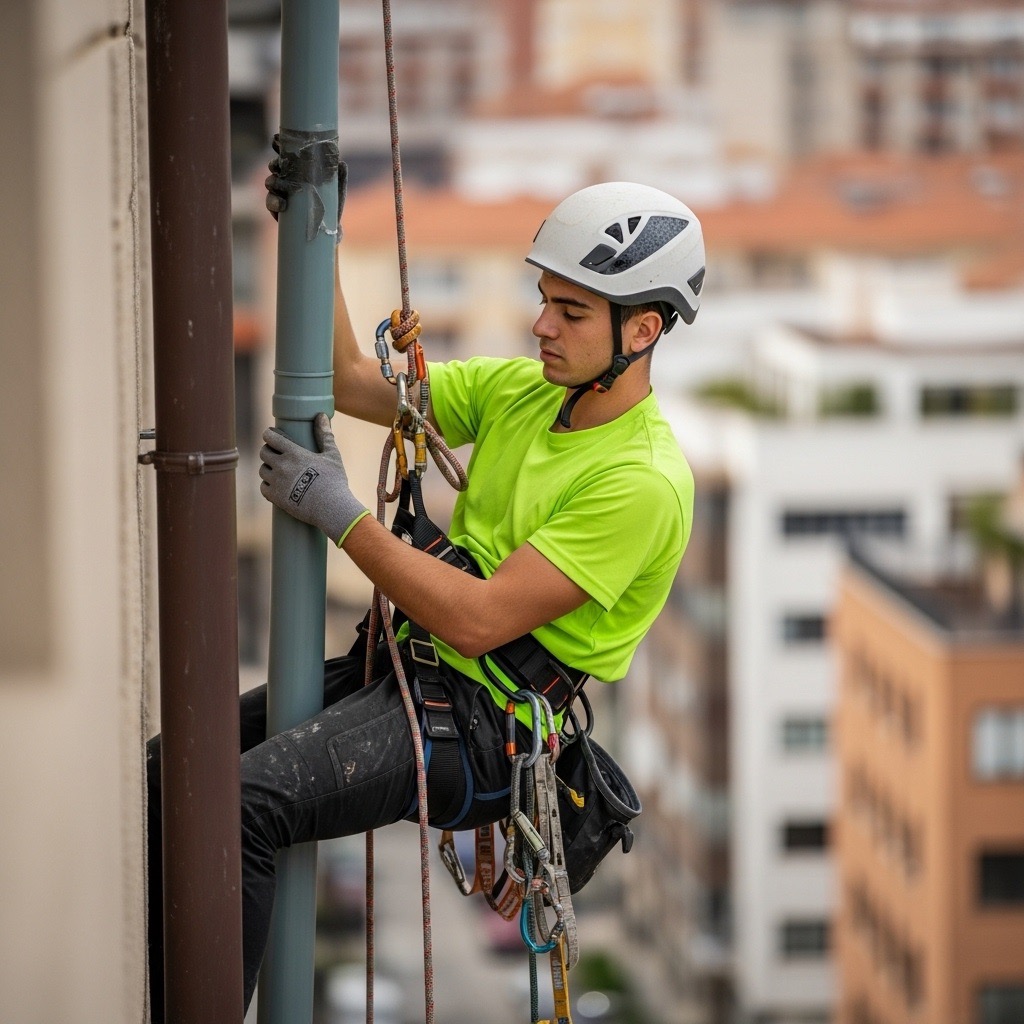 La seguridad es nuestra máxima prioridad, puedes estar tranquilo. Nuestro equipo no solo tiene experiencia, sino que cuenta con la certificación internacional IRATA para trabajos verticales. Siempre seguimos un protocolo estricto.